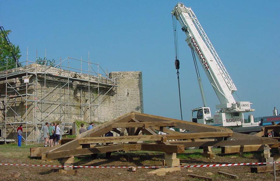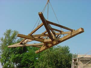 Préparation de la faîtière qui porte le bouquet de fin des travaux et qui doit, en principe, être arrosé.. |